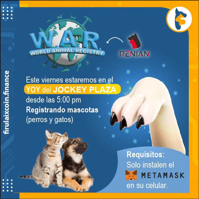 En este evento podrás registrar a tu mascota en blockchain gracias al novedoso sistema de @Firulaixcoin y World Animal Registry (@WorldAniReg).
