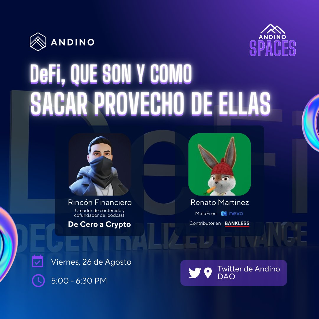 En este space aprende sobre DeFi gracias a dos miembros de la comunidad @andinodao especialistas en el tema.