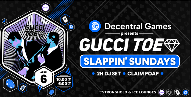 Decentral Games presenta al dúo Gucci Toe que prepara unas 2 horas de lo mejor de la música en el metaverso de Decentraland, por participar en el evento podrás reclamar un POAP y participar de concursos y sorteos.