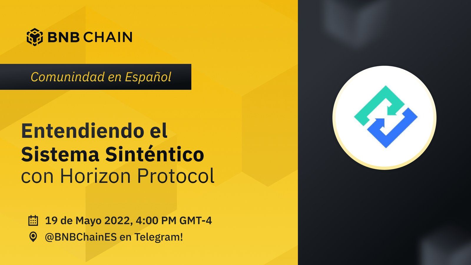 En este evento aprenderás sobre este exchange que trabaja en creación e intercambio de activos sintéticos. Estos activos sintéticos siguen el precio de mercado de otros activos como acciones, commodities, monedas (Forex), índices como el S&P500 o IvescoQQQ y, por supuesto, crypto.