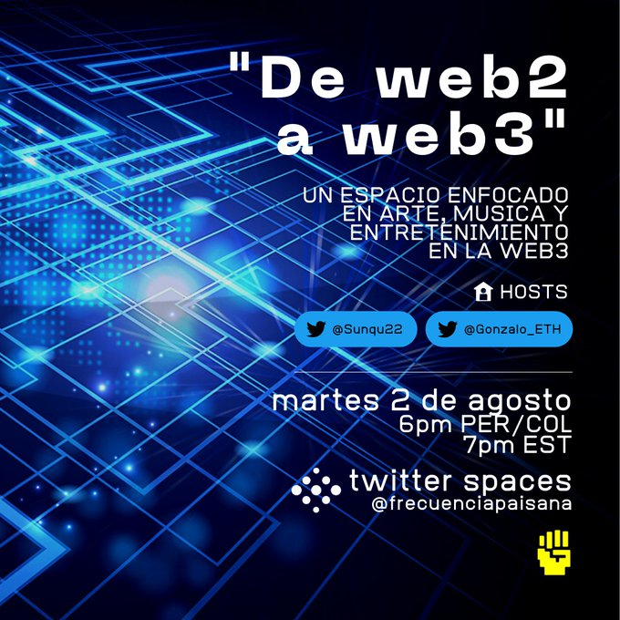 En este espacio hablaremos del arte, música y el entretenimiento en Web3 junto a la comunidad latina de @frecuenciapaisana