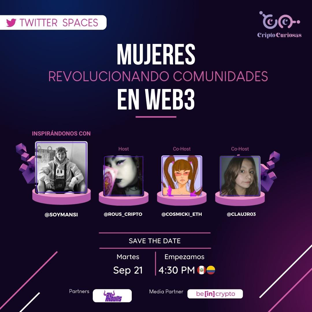 En este space la comunidad de @criptocuriosas estará charlando con algunas de las miembros más destacadas del mundo Web3 de LatAm.
