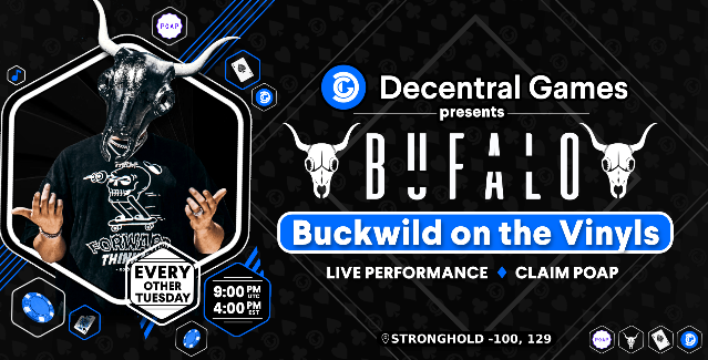 ¡Participa de un set en vivo con Búfalo para una metafiesta quincenal del oeste futurista con la comunidad de Decentral Games!