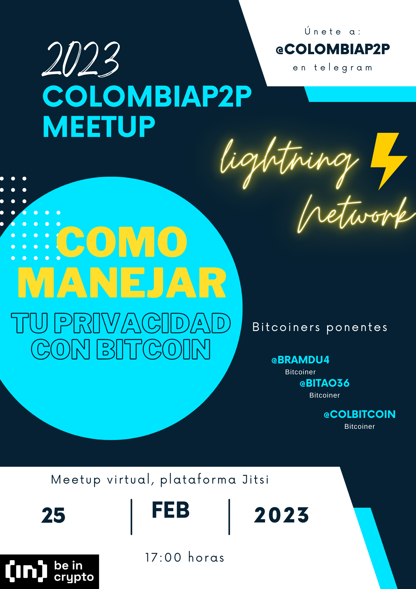 En este evento @COLOMBIAP2P estará capacitando sobre el manejo de la privacidad con Bitcoin junto a bitcoiners del ecosistema colombiano.