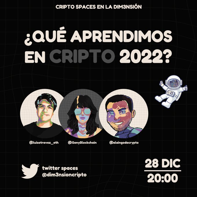 En este space el host del podcast Dim3nsión Cripto hará un recuento del año con los aprendizajes más relevantes e hitos tecnológicos de este sector.