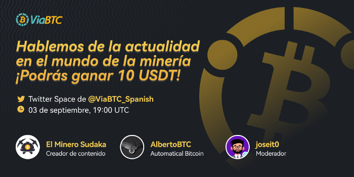 En este evento aprenderás de lo último de minería cripto y además participar de un sorteo de 10 USDT. Para participar solo debes Ingresar tu pregunta en el google form y entrar al #TwitterSpace de @ViaBTC_Spanish y permanecer allí hasta finalizar el espacio.