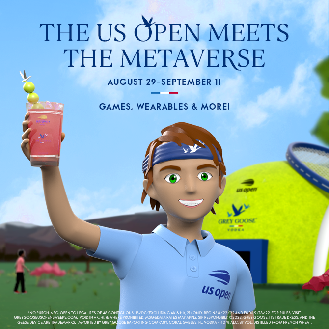 La primera vez en la historia, Grey Goose está trayendo el @Abierto de Estados Unidos a @Decentraland . Pase en su dispositivo de escritorio para una experiencia inmersiva completa con Honey Deuces virtuales, misiones de cócteles y #wearables exclusivos.