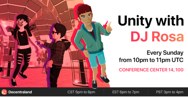 Fiesta en el metaverso con DJ Rosa, ven al metaverso y baila junto a la comunidad de Unity Café en el Decentraland Conference Center. En este lugar podrás conversar, bailar, hacer networking y aprender más de este metaverso mientras escuchas buena música.