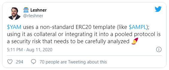 El director ejecutivo de Compound Finance, Robert Leshner [@rleshner], señaló los riesgos de seguridad que podrían surgir: