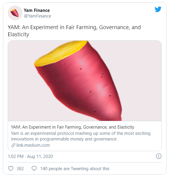 Yam.Finance, también lanzado el 11 de agosto, promete devolver la justicia a la agricultura con un protocolo y un “token de valor cero” que apunta a ser totalmente democrático y descentralizado. Yearn.Finance y Ampleforth ya han hecho declaraciones y ofertas similares.