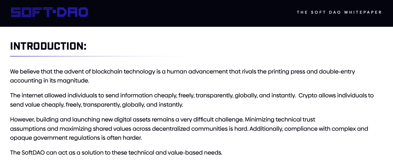 Soft DAO es una organización relativamente nueva, que publicó su documento técnico el 12 de octubre de 2022, con fechas de cierre para las discusiones el 15 de octubre de 2022.