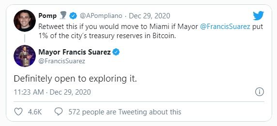 Sponsored“Retwetee esto si se mudara a Miami si el alcalde Francis Suárez pone el 1% de las reservas del tesoro de la ciudad en Bitcoin”.