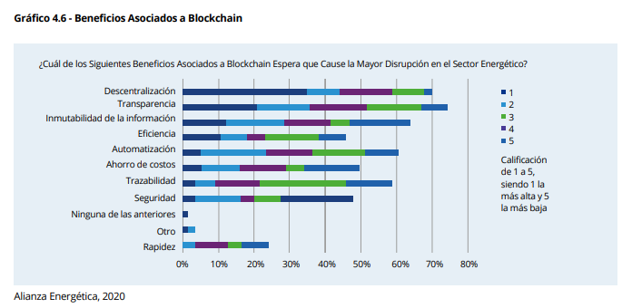 El estudio hace referencia a una entrevista realizada a José Miguel Bejarano de Siemens Energy, en la cual señala que gracias a la implementación de la tecnología blockchain en el sector energético los consumidores se beneficiarán de dos maneras: