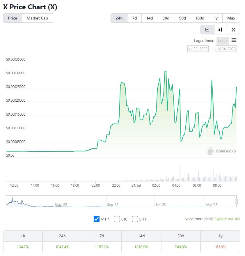 En las últimas 12 horas más o menos, el token X ha aumentado 1047%, según CoinGecko.