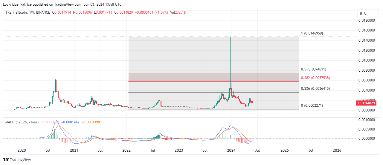 Sin embargo, el pico fue rechazado poco después, y ahora el precio de TRB está de nuevo por debajo de los niveles anteriores al colapso de FTX.