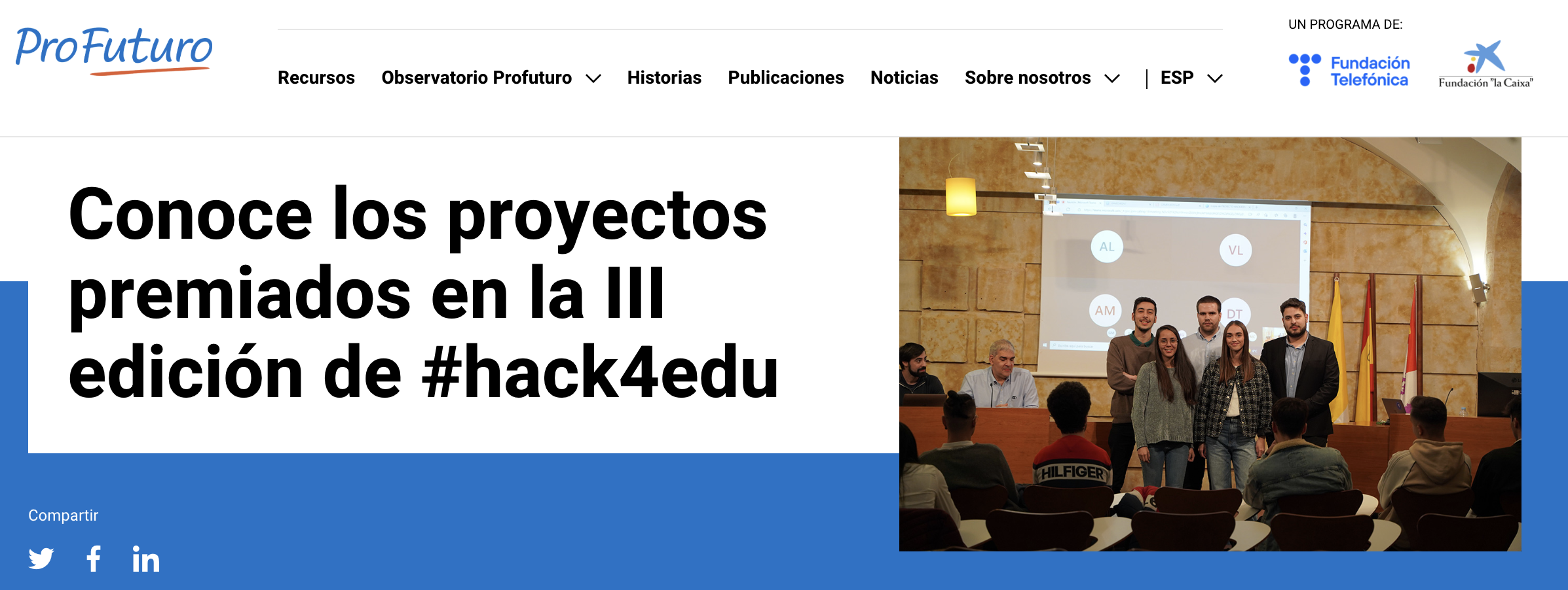 Cuatro estudiantes de la Universidad Pontificia de Salamanca (UPSA) de Madrid, España, fueron galardonados en el hackathon #hack4edu, donde participaron 135 hackers de 6 países y 12 universidades, y donde crearon soluciones en realidad virtual, chatbots y tecnología blockchain.