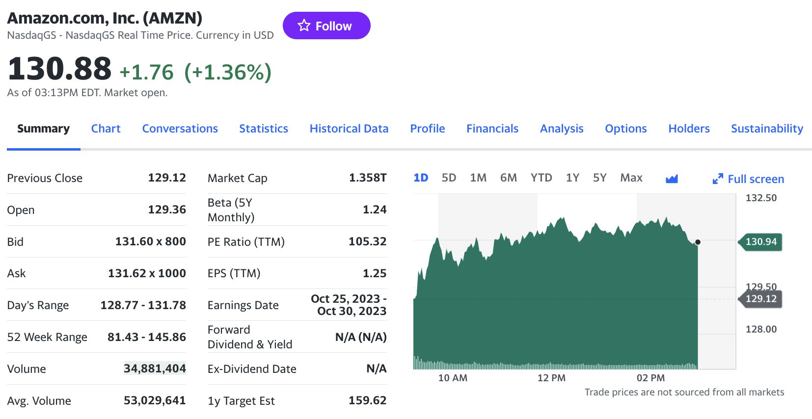 Amazon ha tenido un crecimiento constante desde hace años, pero fue en la pandemia cuando sus acciones pasaron de 94,19 a 172,55 dólares. En tanto, su valuación de mercado pasó de 937 mil millones de dólares a 1,69 billones de dólares. Su capitalización de mercado actual se estabilizó a 1,36 billones de dólares, de acuerdo con Yahoo.