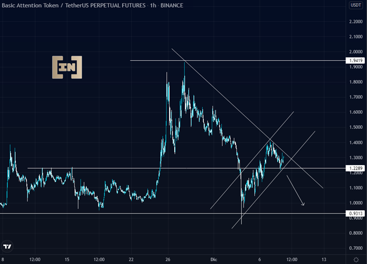 Por lo tanto, de no lograr en las próximas horas ubicarse por encima de los 1.3 dólares, el precio de BAT podría volver al área de los 0.9 dólares.