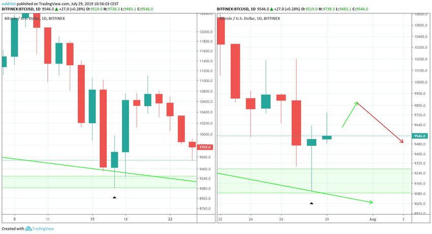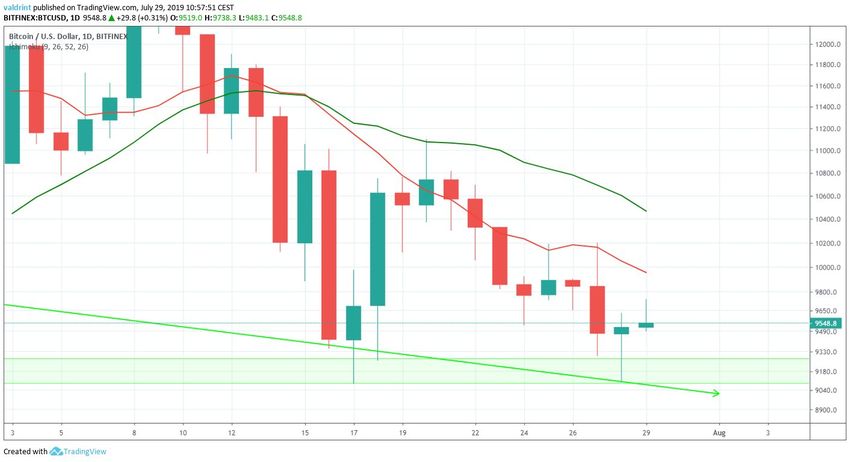 El 17 de julio de 2019, el precio de Bitcoin alcanzó un mínimo de $9084. Luego se produjo un movimiento alcista. El 21 de julio, el precio de BTC alcanzó brevemente máximos superiores a $11.000. Desde entonces, ha estado retrocediendo lentamente. Para el 29 de julio, nuevamente marcó mínimos cerca de $9000.