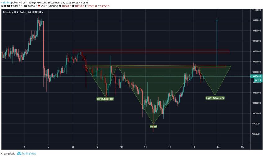 El precio de Bitcoin está, posiblemente, en el proceso de completar un patrón de hombro cabeza hombro invertido.