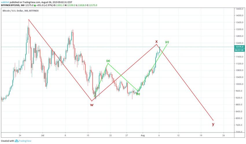El precio de Bitcoin ha terminado una corrección A-B-C, con un conteo de ondas 3-3-5. Sin embargo, esta es sólo la onda W en una corrección W-X-Y más amplia.
