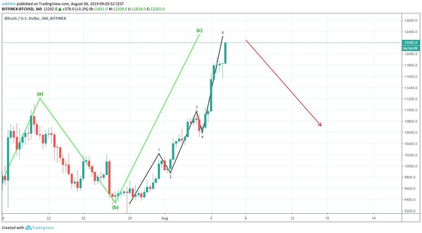 Desde que alcanzó un mínimo el 29 de julio, es probable que BTC esté en el proceso de terminar un movimiento ascendente de cinco ondas.