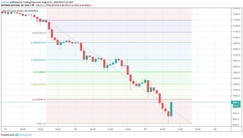 El 12 de agosto de 2019, el precio de Bitcoin alcanzó un máximo de $11.615. Al día siguiente, comenzó un rápido retroceso y aún está en curso. El precio de BTC encontró brevemente soporte por encima de $10.400 antes de continuar el movimiento bajista.