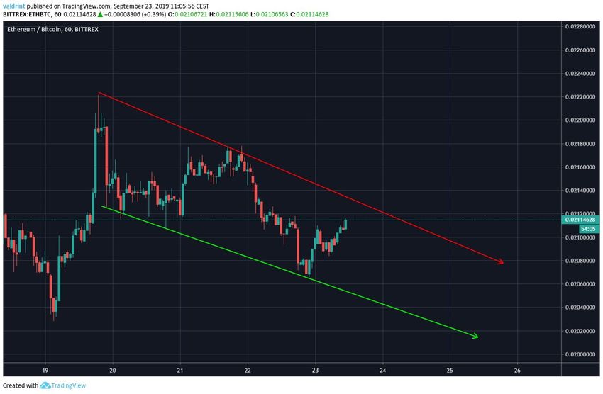 - ETH/BTC se negocia dentro de una cuña descendente de largo plazo.