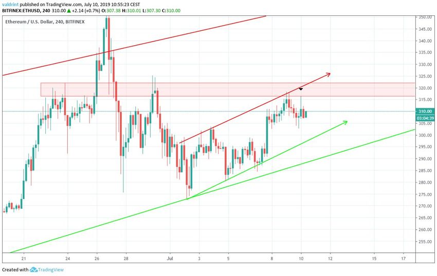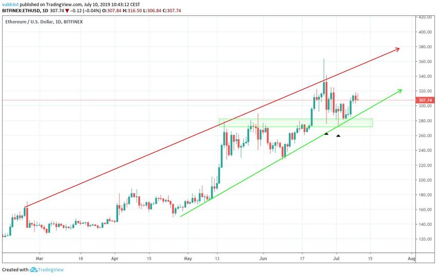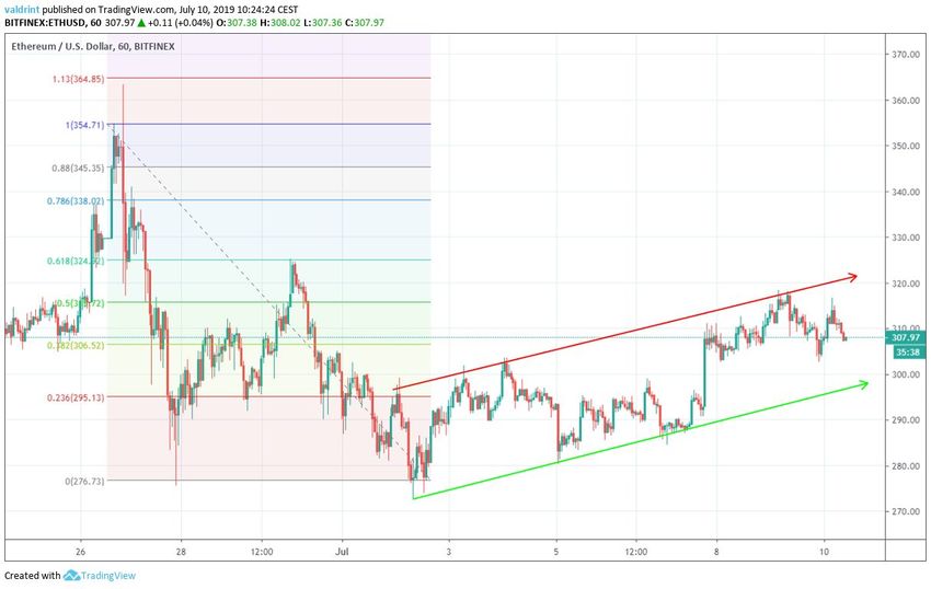 El 2 de julio de 2019, el precio de Ethereum marcó un mínimo de $272,5. Lo siguió una tendencia alcista gradual. El 9 de julio, el precio de ETH alcanzó un máximo de $317,5.