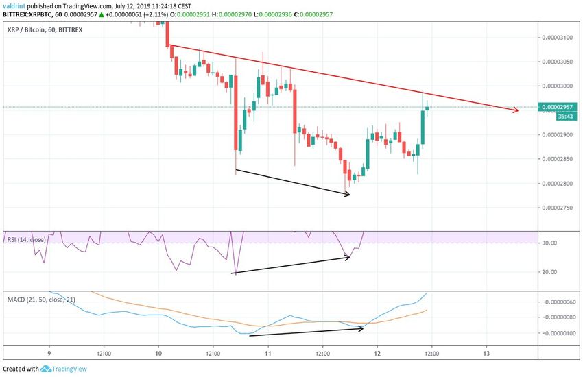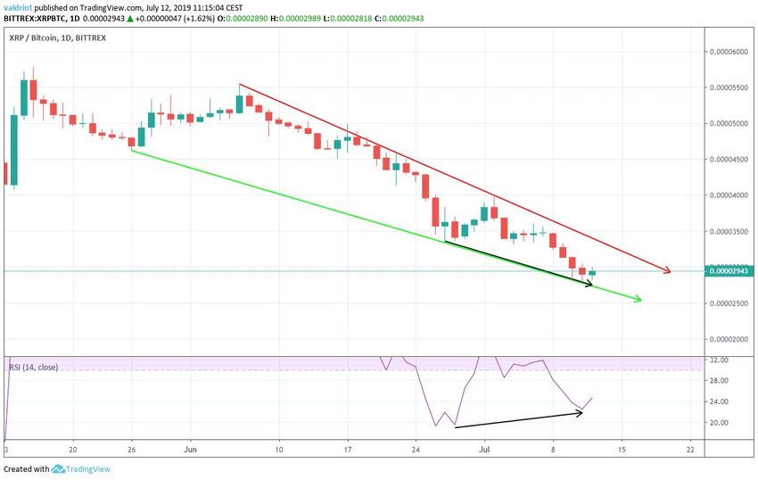 - XRP/BTC se está negociando dentro de una cuña descendente.