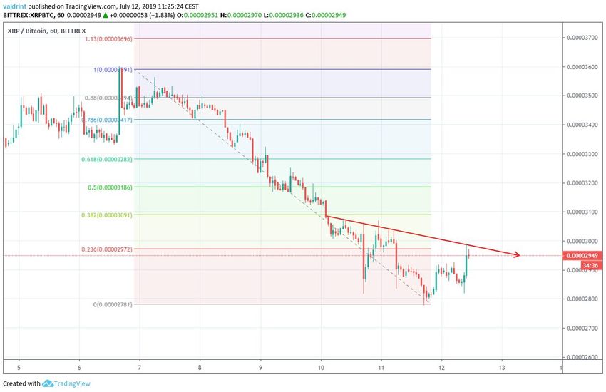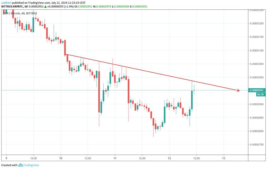 El 6 de junio de 2019, el precio de XRP alcanzó un máximo de 3600 satoshis. Se produjo una disminución gradual, que se intensificó el 8 de junio. El 11 de junio, alcanzó mínimos de 2780.