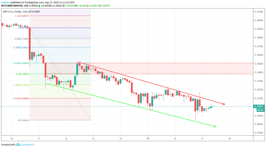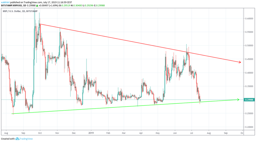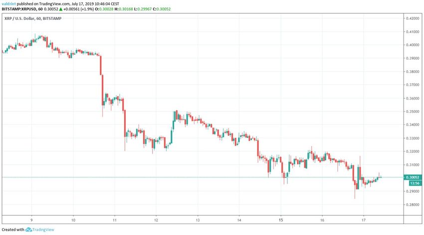 El 9 de julio de 2019, el precio de XRP alcanzó un máximo de $0,408. Un rápido retroceso se produjo al día siguiente, y aún está en curso. El 16 de julio, el precio marcó un mínimo de $0,286.