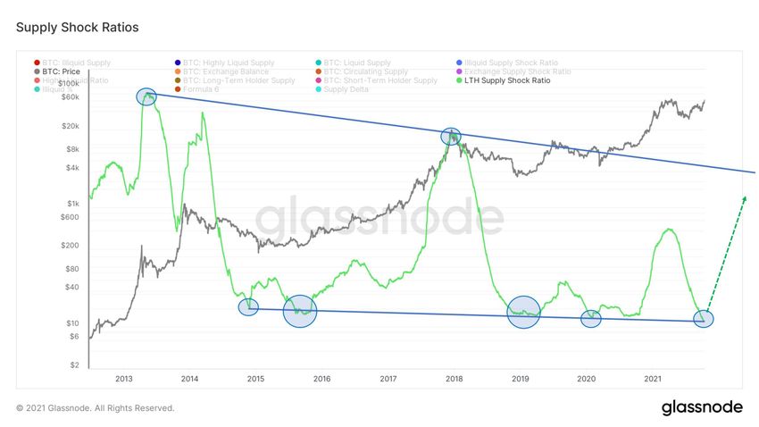 Esta hipótesis está respaldada por el índice de choque de oferta para LTH. Recientemente, fue interpretado en Twitter por el analista en cadena @WClementeIII, utilizando líneas de tendencia familiares para el análisis técnico.