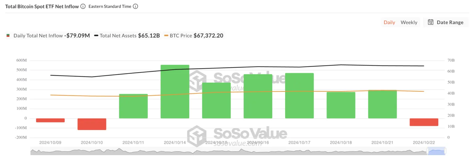 Los ETF de BTC registran salida neta de 79 millones de dólares