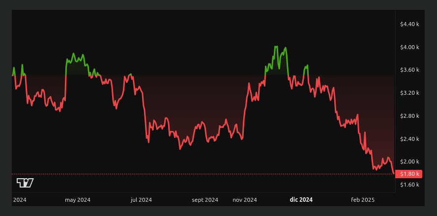 Al momento de redactar este artículo, ETH cotiza alrededor de 1,795 dólares, habiendo perdido casi el 50% de su valor en el último año. Esta tendencia refuerza las preocupaciones de los analistas sobre la viabilidad de ETH como una inversión atractiva en el panorama actual de las criptomonedas.