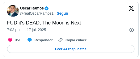 Ahora que el FUD parece haber sido superado, muchos analistas apuntan a un futuro brillante para XRP. Ramos predice que el próximo destino para XRP es “la Luna”. Esto hace referencia a un crecimiento significativo y sostenido en el precio de la criptomoneda, similar a lo que experimentaron otras criptos en su momento de mayor auge.