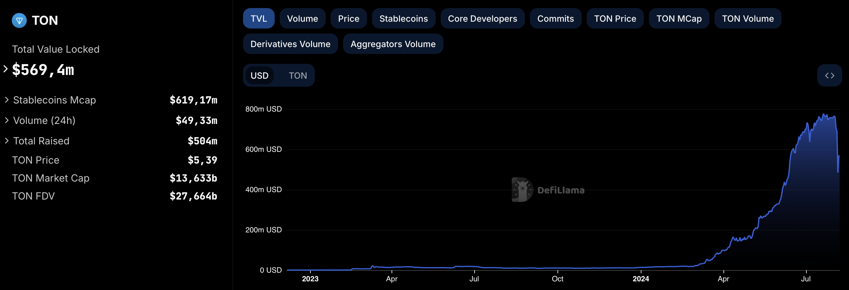 Según estadísticas de DefiLlama, la blockchain TON registra más de cuatro millones de transacciones diarias. Los últimos datos muestran que tiene un valor total bloqueado (TVL) superior a 560 millones de dólares, un crecimiento del 20% desde el lunes, lo que añade credibilidad a la selección del analista.