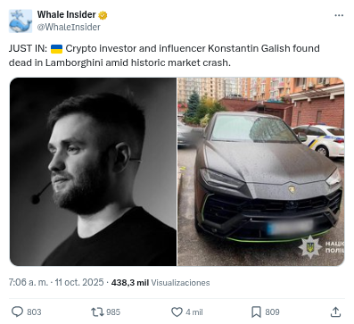 “Ayer fué un día que se recordará durante mucho tiempo: – Mayor liquidación de la historia (20B) – Algunas alts se fueron literalmente a 0 (ATOM por ejemplo) – Algunas personas perdieron todo su dinero – Es probable que alguna entidad importante haya colapsado (lo sabremos durante los próximos días)”, lamentó Tuku en X.