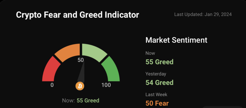 A pesar de la notable caída del precio de Bitcoin desde la introducción de los ETF de Bitcoin, se percibe un cambio hacia un sentimiento ligeramente más positivo en el mercado. El Índice de Miedo y Codicia de Coinstats indica un mayor optimismo entre los inversores, actualmente en 55 (codicia).