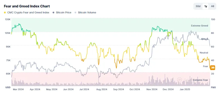 Mientras tanto, el analista de mercado Miles Deutscher destacó que el Índice de Miedo y Codicia Cripto, un indicador de sentimiento ampliamente seguido, ha caído a su nivel más bajo desde octubre de 2024. En su opinión, sin embargo, el miedo extremo en el mercado podría ser un precursor de una reversión de precio, indicando que Bitcoin podría estar acercándose a un punto de inflexión crítico: