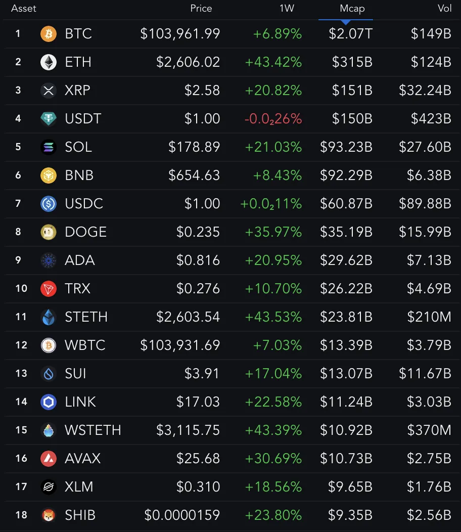 A pesar de que BTC subió 7% durante este período, fue superado por todas las 12 principales altcoins—más notablemente por Ethereum (ETH), que saltó 43%, y Dogecoin (DOGE), que se disparó 36%. Esta reversión a corto plazo puede indicar las primeras etapas de una posible altseason.