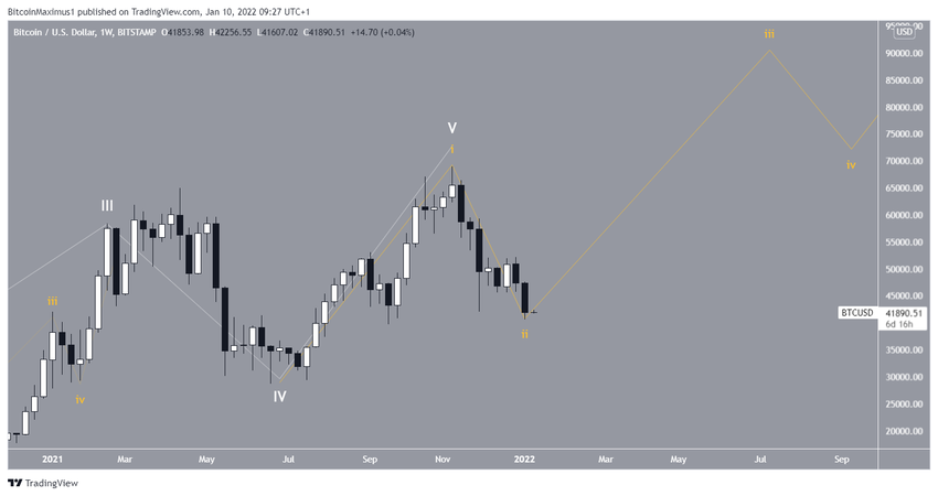 El recuento más bajista de BTC sugiere que el movimiento ascendente de cinco ondas que comenzó en diciembre de 2018 terminó con el precio más alto de todos los tiempos de 69,000 dólares en noviembre de 2021.