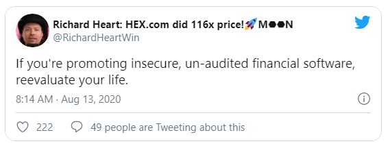 Aunque promete interés en monedas bloqueadas, el propósito de HEX no está del todo claro. Recientemente, Richard Heart promovió descaradamente un pump and dump de su moneda.
