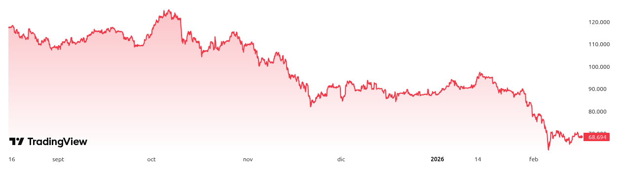 Bitcoin cotiza actualmente alrededor de 68,600 dólares (con fluctuaciones entre 68,000-70,000 dólares en las últimas 24 horas). En los últimos años, el Año Nuevo Lunar ha generado un patrón claro: caídas del 10-20% en las semanas previas debido a ventas para liquidez festiva, seguidas de recuperaciones fuertes al reabrir los mercados chinos.