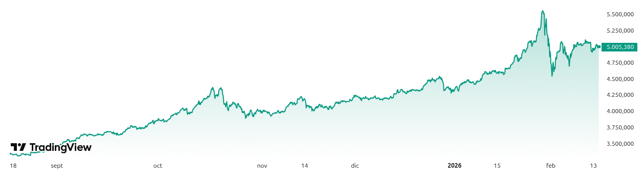 El oro se mantiene firme cerca de los 5,040-5,044 dólares por onza al momento de la publicación, tras un enero récord en términos de demanda en RMB y un repunte reciente impulsado por compras de refugio seguro.