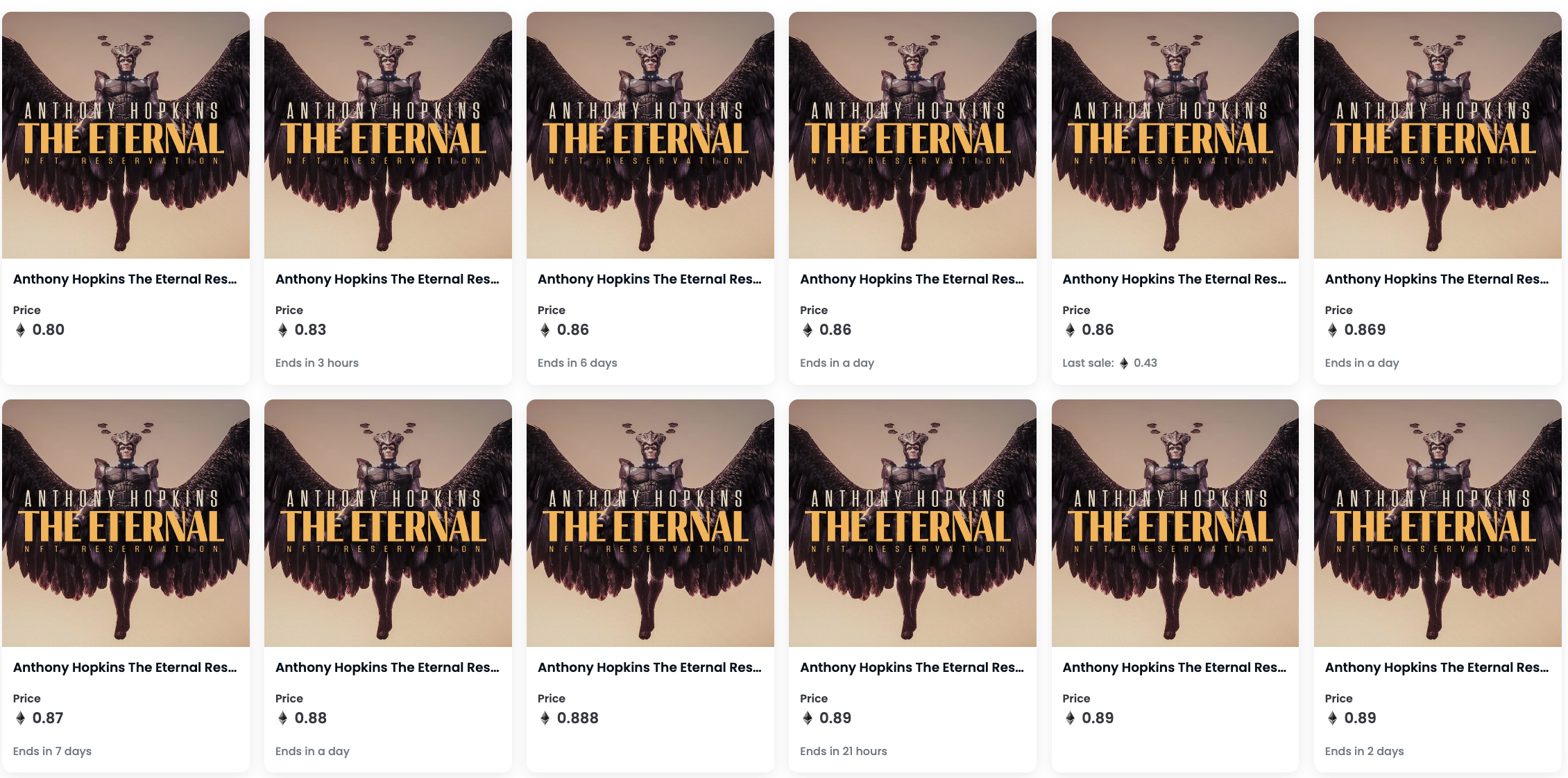 Opensea informó sobre algunos problemas en su plataforma al momento de la acuñación de NFT de “The Eternal Collection”, debido a la gran demanda de los usuarios por estos activos. Sin embargo, todos los tokens no fungibles de Anthony Hopkins se agotaron en menos de 10 minutos.