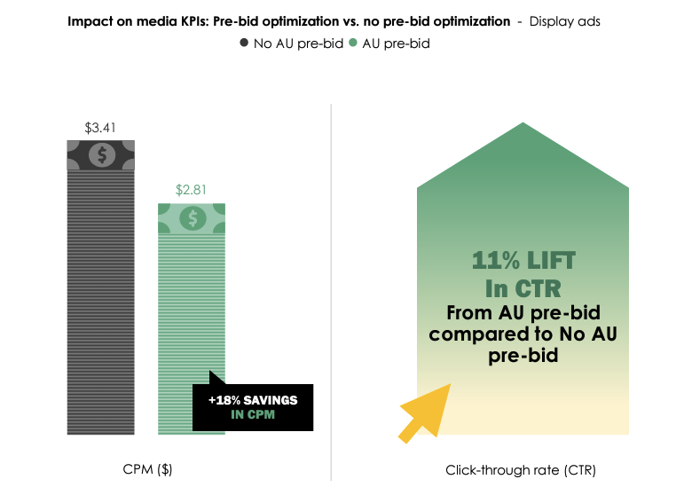 Por otro lado, la novedad de la optimización previa a la oferta radica en su capacidad de considerar las métricas AU de las impresiones individuales incluso antes de que el anuncio aparezca en una página web.