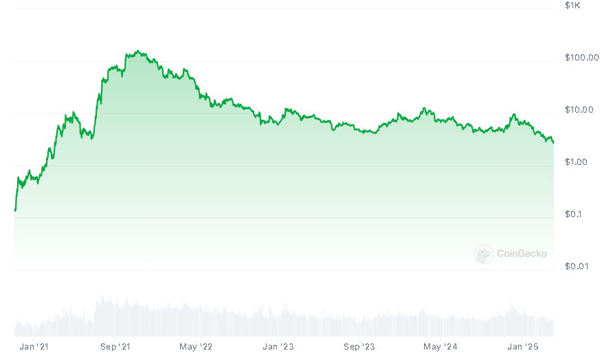 El suministro inicial de AXS fue del 22.22%. Se vendió en Binance por 0.10 USD durante el lanzamiento, llegando a rozar los 165 dólares pocos meses después, gracias al aumento de jugadores y el desarrollo del programa de staking. las expectativas se han desinflado desde entonces, devaluándose el token un 95%.