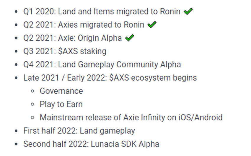 Hoja de ruta de Axie Infinity