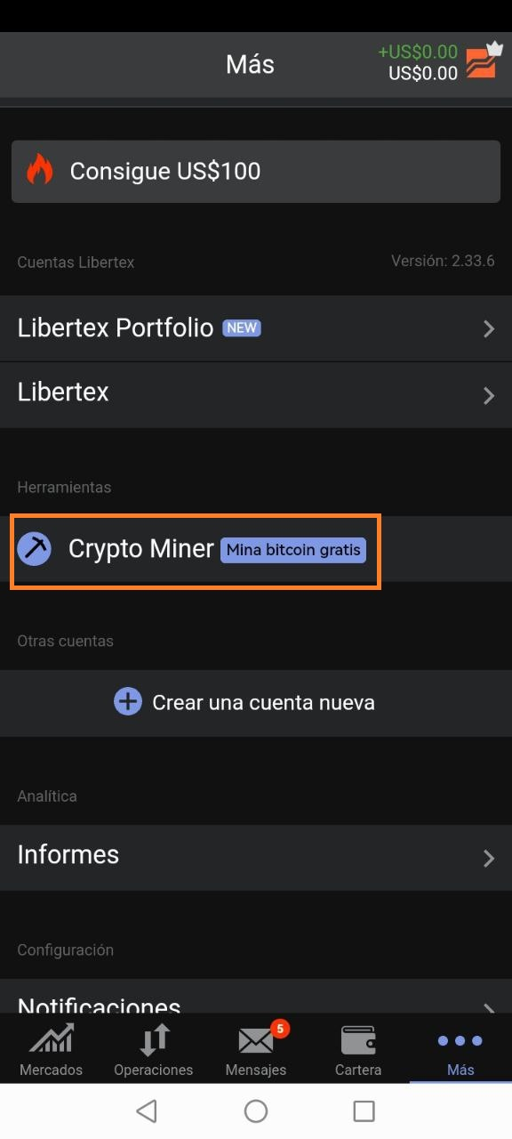 Paso a paso de cómo usar el cloud mining de Libertex